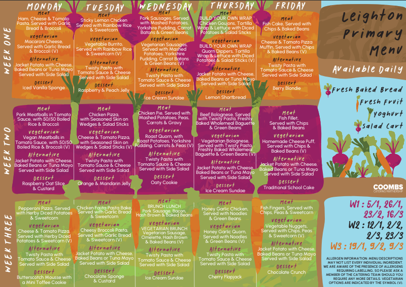 Starting from September we will be using Coombs Catering for our school meals. Please see our Autumn menu below.